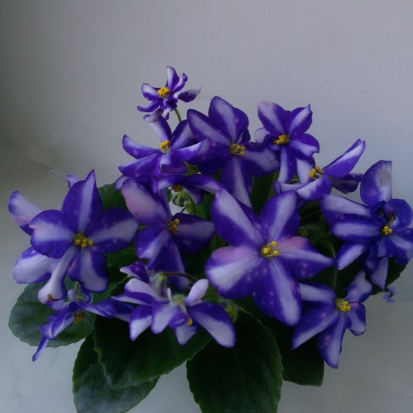 | Uchu (Ms.Yuriko) Сине-фиолетовые звёзды с розовыми штрихами и горошинами фэнтези, по центру лепестка идёт белая полоса. Средне-зеленая листва. Красивый и необычный сорт. Химера