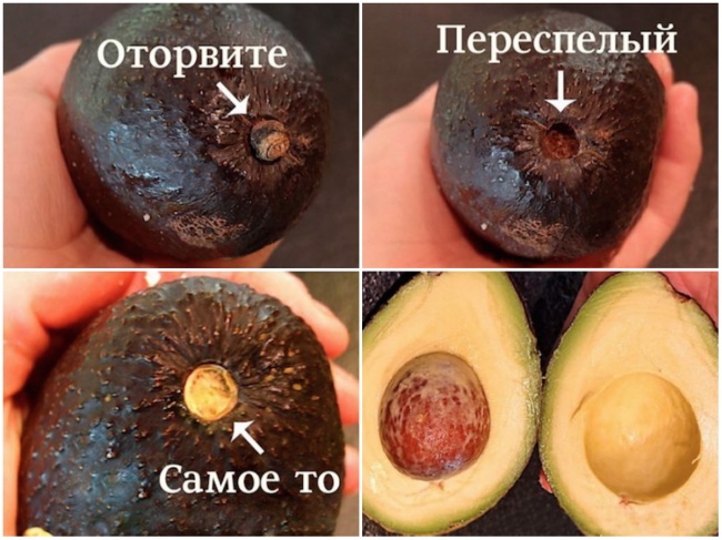 Чтобы взять самый спелый авокадо, снимите кусочек стебля.