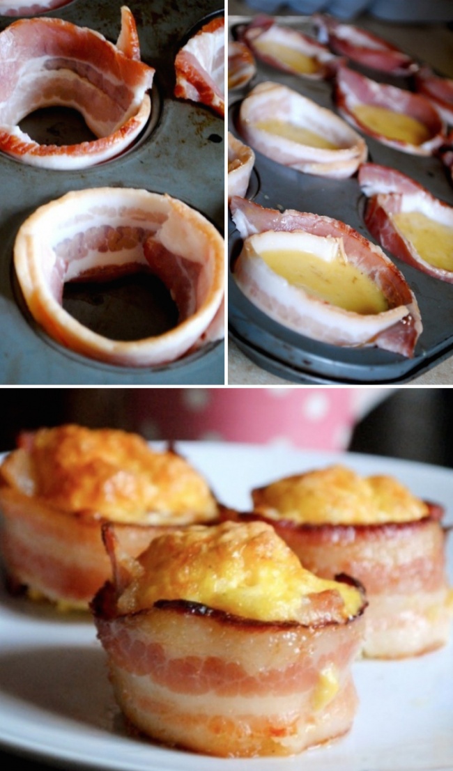 Бекон также можно запечь вместе с яйцом в форме для кексов.
