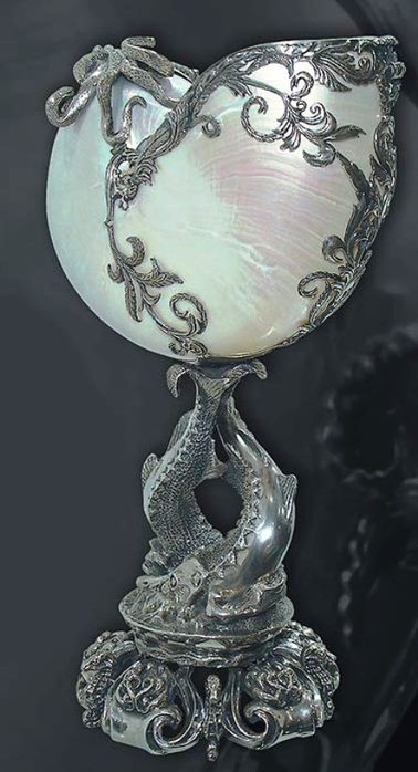 Красота раковин и удобство их обработки позволило ювелирам XVI- XVII веков создавать работы, которые использовали как дары и призы. Обладатель такого кубка выносил его лишь в самых торжественных случаях как символ своего престижа.