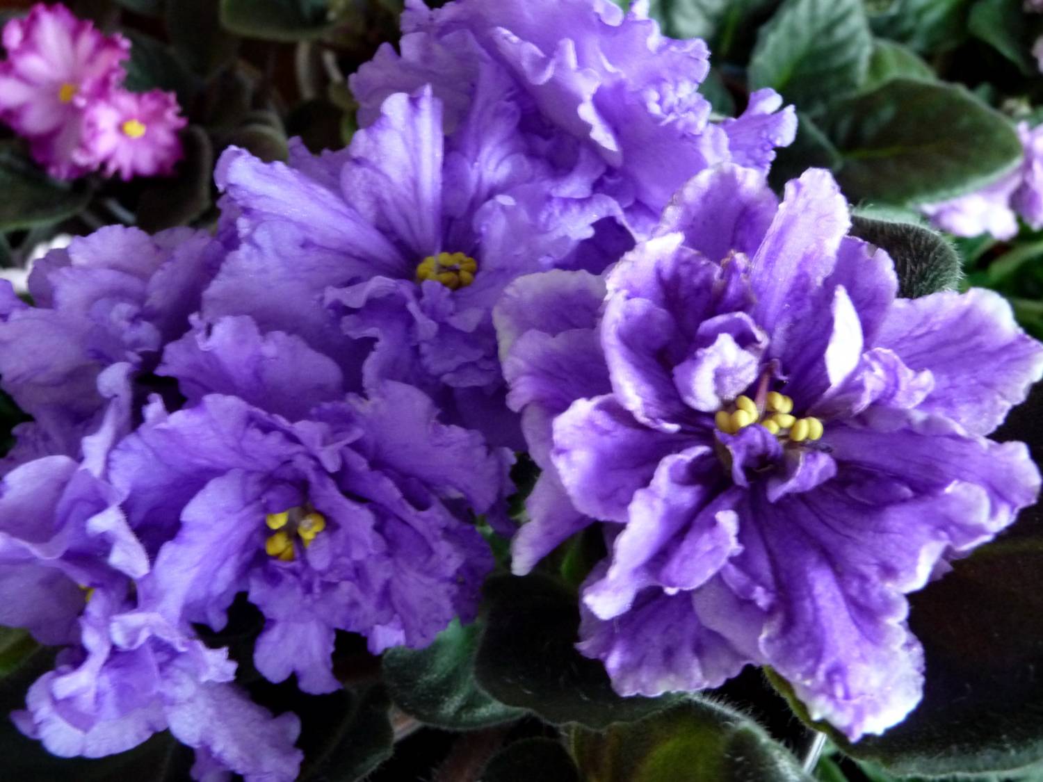 | Наташа, Наталья, спасибо! Цитата (Наталья) А как он в сравнении с Владимиром? Для сравнения сорвала уже вялый цветок Витязя и положила (справа) на розетку с цветущим Владимиром. Как обычно синий цвет фотик передавать хорошо не хочет. У Витязя пока первые 2 цветоноса на молодой розетке, поэтому по стабильности и цветению сравнивать их пока рано. Форма цветов разная + кайма и форма листьев разная (у Витязя ровные темно-зеленые округлые).